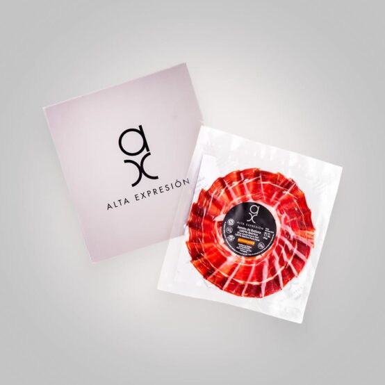 All of the products in this line are made from 100% Ibérico-breed pigs, raised free-range and fed a diet primarily consisting of acorns, which gives Alta Expresión products their truly unique flavor and texture. Our Acorn-Fed 100% Ibérico Pork Ham is an exclusive product and a true icon of Spanish cuisine. Sourced from the hind legs of the 100% Ibérico pig, it is sliced thin and expertly plated, ready for you to enjoy with no preparation required.